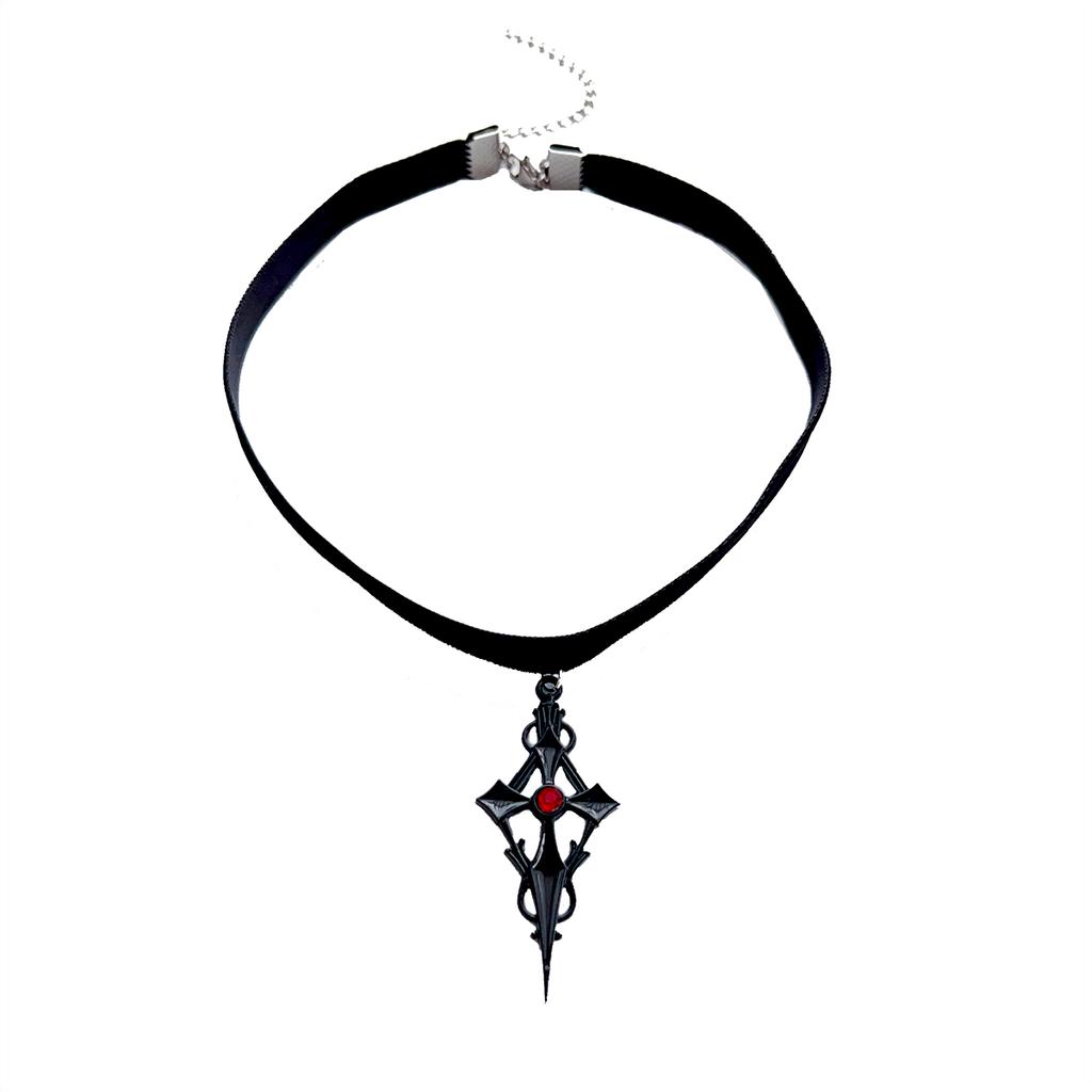 Fashionable dark Gothic style cross-shaped hollowed-out carved pendant, black velvet strap choker necklace for women