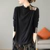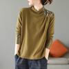 Ethnic Style Solid Color Printed Velvet Long-sleeved Base Button-down for Women In Springtime Comfortable Inner and Outer Wear