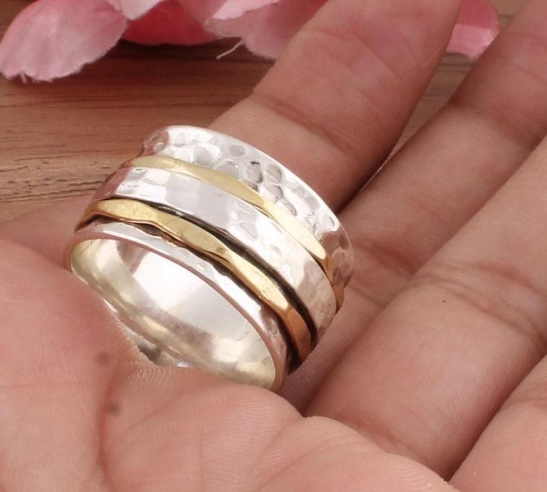 Solidny Pierścionek Spinner ze Srebra Próby 925 Pierścionek Medytacyjny Pierścionek Dwukolorowy Pierścionek Spinner Pierścionek Damski i Męski Srebrna Biżuteria