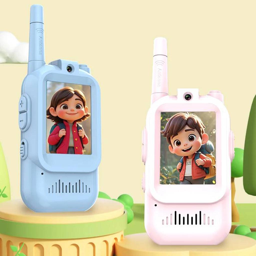 Video Kids Walkie Talkie 2 Pack Rechargeable Children Indoor Outdoor Toy 2-inch Screen Cartoon Intercom Christmas Birthday Gifts