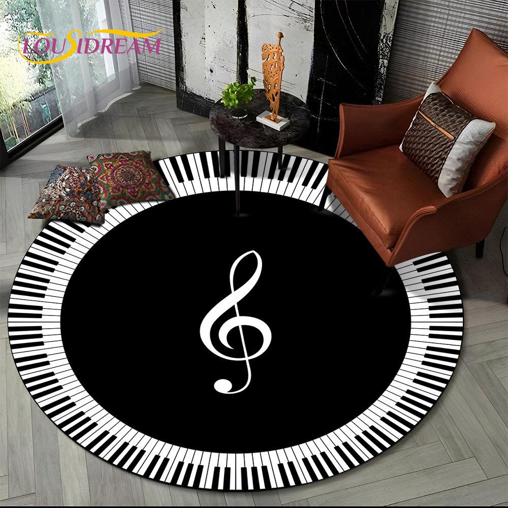 Piano Black White Key Music Symbol Area Rug,Round Carpet Rug for Living Room Bedroom Sofa Foot Pad Decor Non-slip Floor Mat Gift