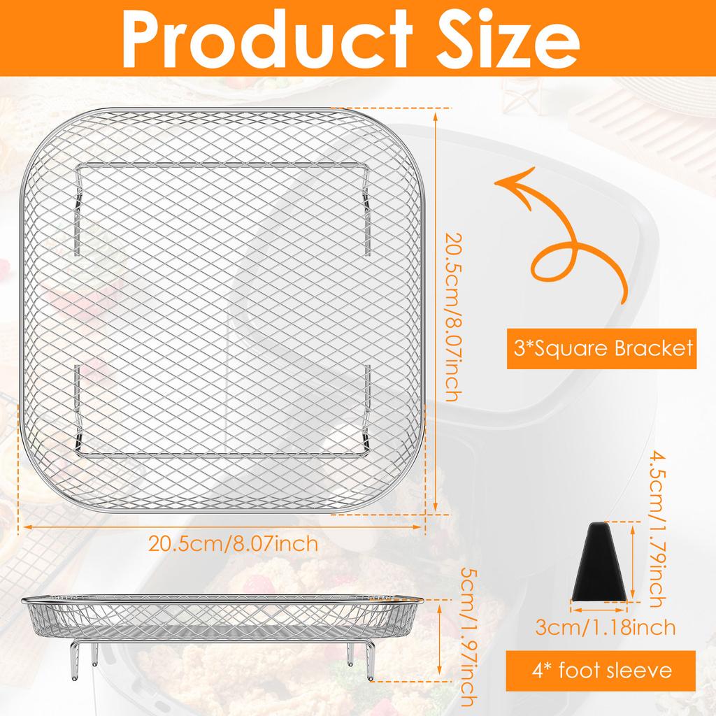 3Pcs 3-Layer Air Fryer Racks Square/Round/Rectangular Stackable Air Fryer Basket Tray Dehydrator Rack Air Fryer Oven Accessories