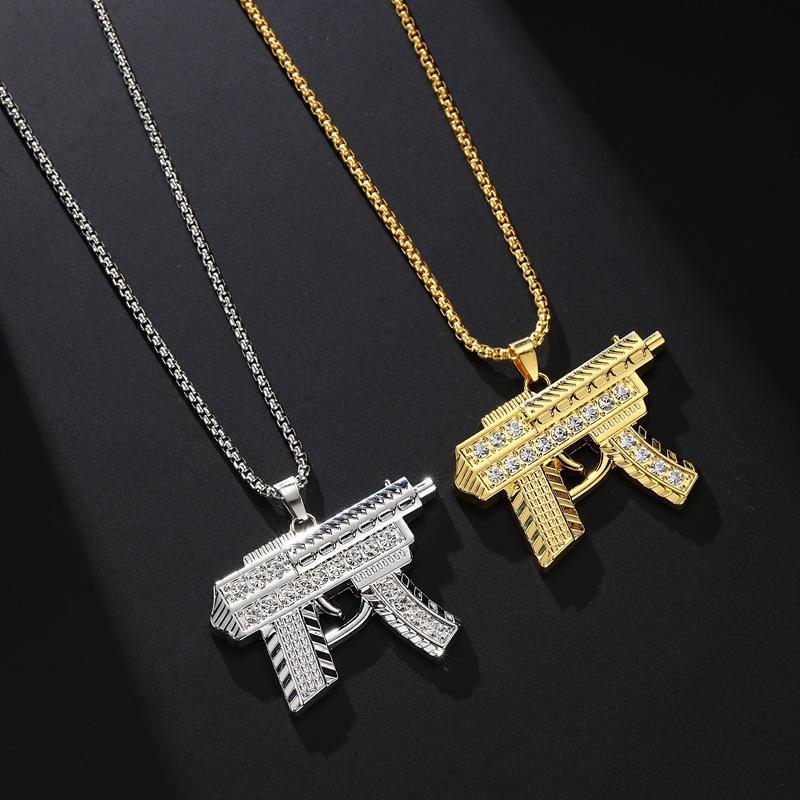 Hip-Hopowy naszyjnik z wisiorkiem w kształcie pistoletu maszynowego ze stopu: Wszechstronna biżuteria z diamentami dla mężczyzn i kobiet