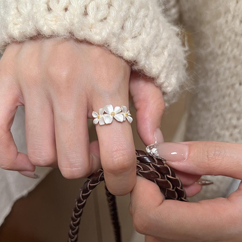 Szyścienisty Otwarty Pierścionek z Trzema Kwiatami: Wszechstronna, Modna i Unikalna Biżuteria na Rękę