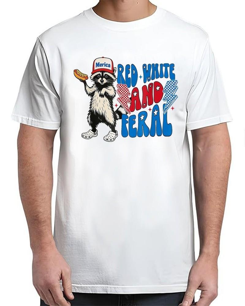 Czerwony Biały i Dziki Szop Zabawny USA 4 Lipca Vintage Koszulka Unisex dla Dorosłych S-4XL