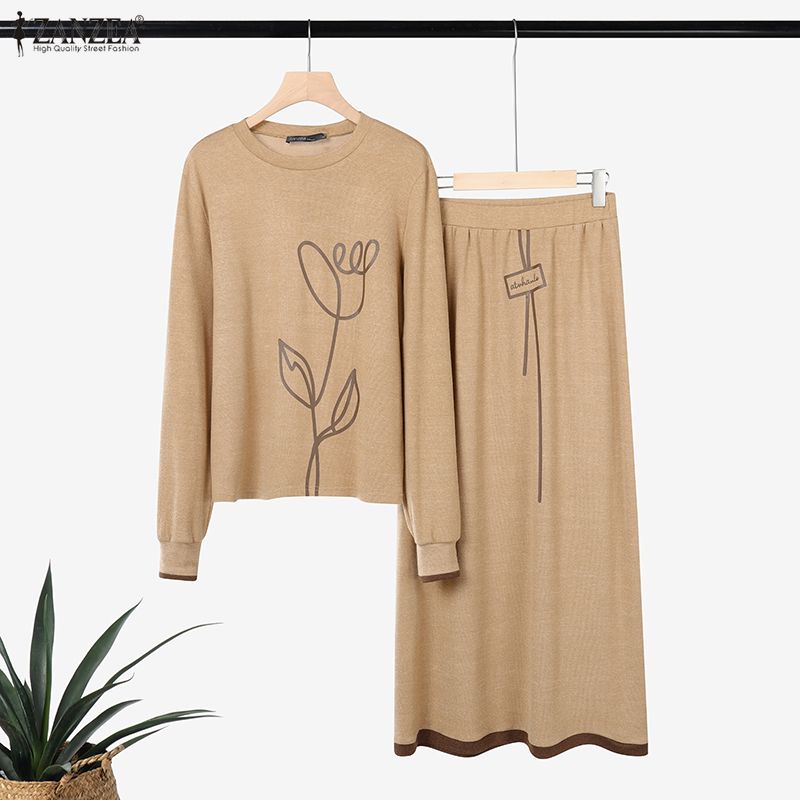 ZANZEA Bluzka z długim rękawem i spodnie damskie, casualowe dwuczęściowe zestawy garniturowe