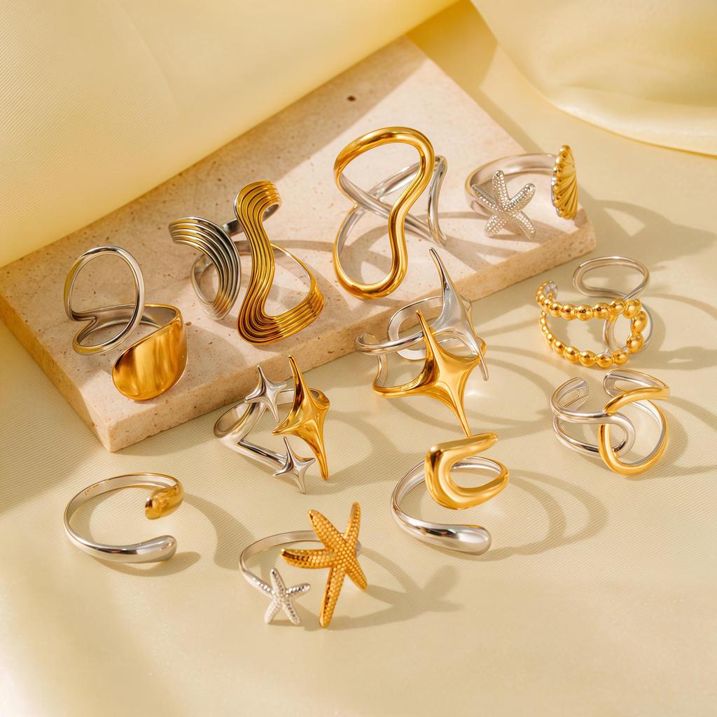 Regulowany pierścionek ze stali nierdzewnej w stylu Color-Block: Stylowy, Odporny na blaknięcie, Niszowy design dla kobiet