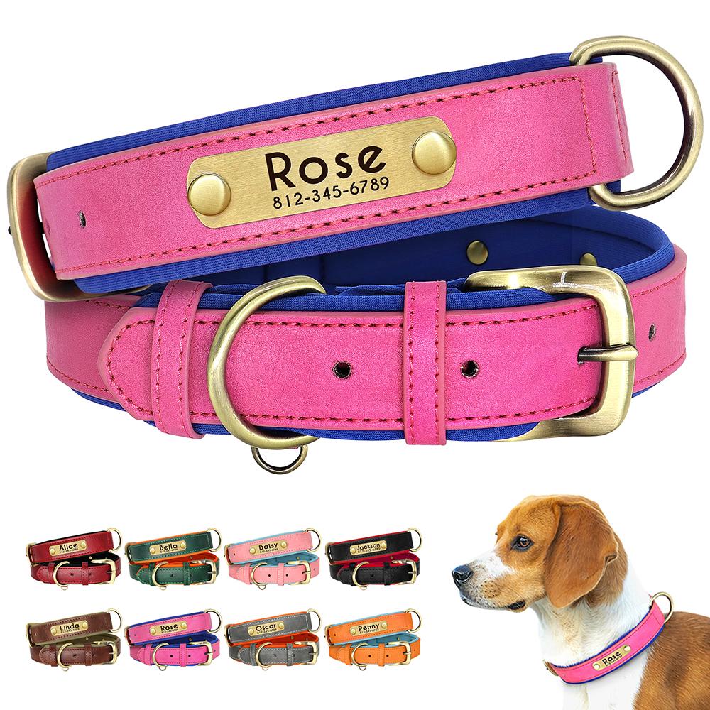 Custom PU Leather Dog Collar Free Engraving Dog Collars Adjustable Pet Pitbull Necklace Soft Padded for Small Medium Large Dogs
