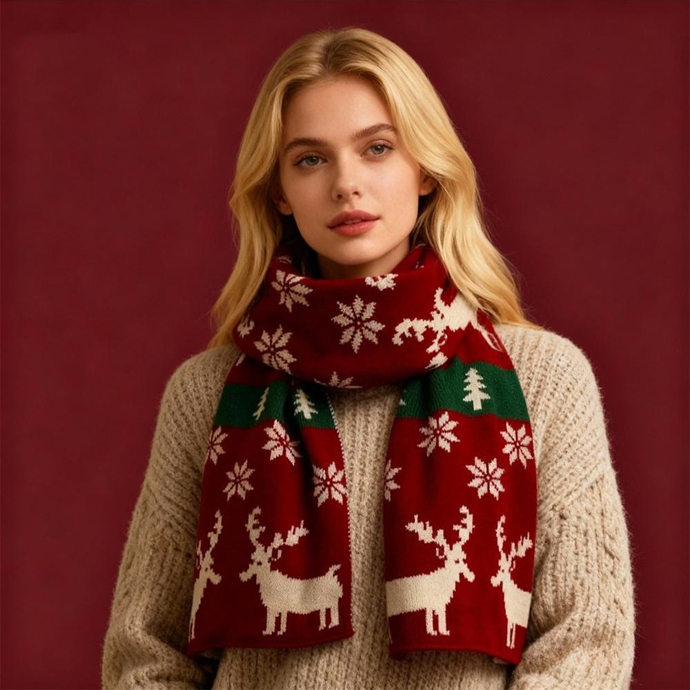 Christmas Elk Scarf Women'S Autumn Winter Polyester Fiber Scarf Christmas Gift Warm Sun Protection Neck Protector Shawl