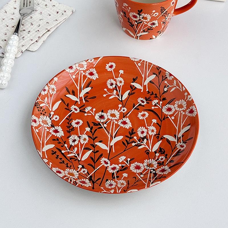 French Style Flower Pattern Ceramic Plates New Household 8 Inch High Aesthetic Dinner Tableware Colour Ceramic Glaze Plate