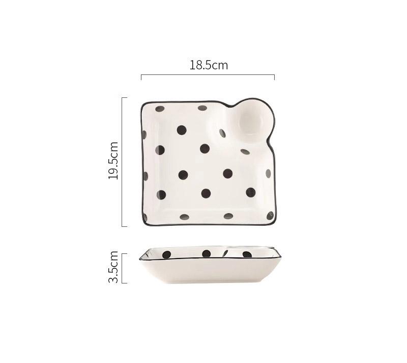 Polka Dot Square Dumplings Plates New Household Ceramic Dividing Plate with Vinegar Dish Creative Underglazed Colour Tableware