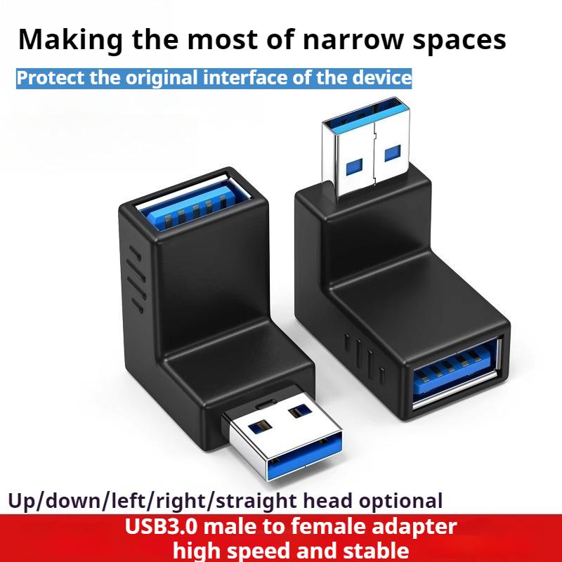 USB3.0 adapter male to female 90-degree right-angle USB elbow to connector L-shaped USB cable male to female converter