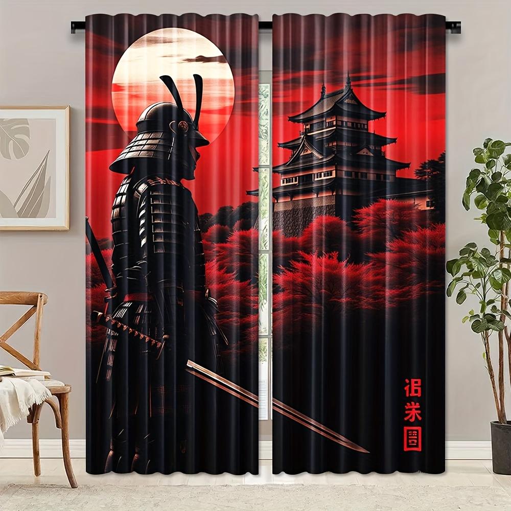 2pcs Elegant Anime Samurai Sheer Curtains – Artistic Decor for Bedroom & Living Room