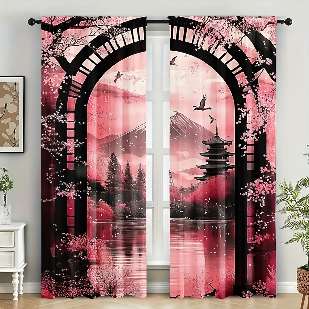 2PCS Vintage Sakura Party Curtains – Polyester Sakura-Themed Drapes for Bedroom & Living Room Decor