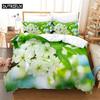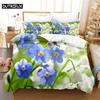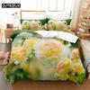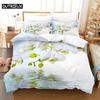 Flowers Green Leaves Queen Bedding Set Duvet Cover Bedroom Bed Set Comforter Cover Set King Size Duvet Cover Set Bedding Sets