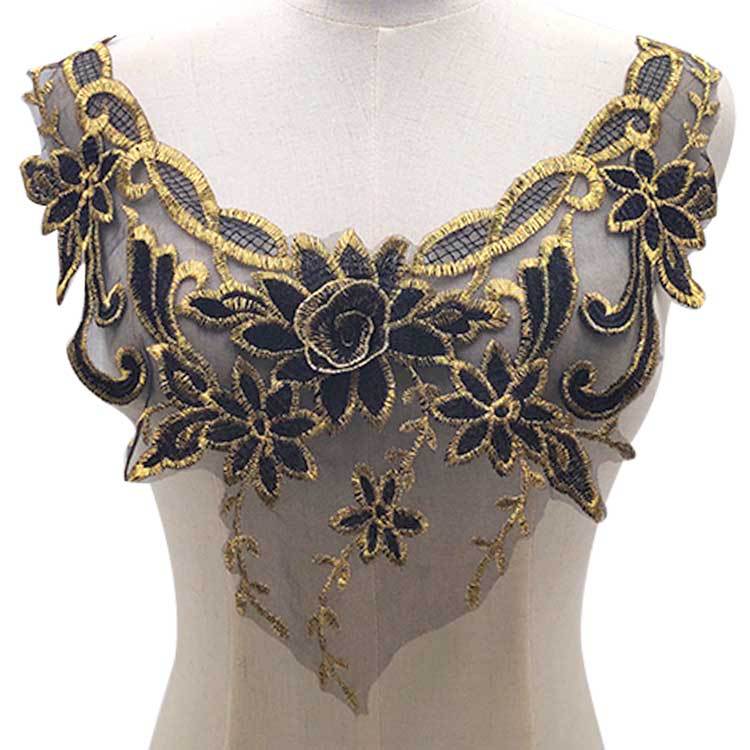 Koronkowy Kołnierzyk Rozpuszczalny w Wodzie, Kołnierzyk ze Złotą Nicią, Koronkowy Broszka Haftowana na Siatkowym Spodzie, Akcesoria Koronkowe DIY, Czarno-Złoty