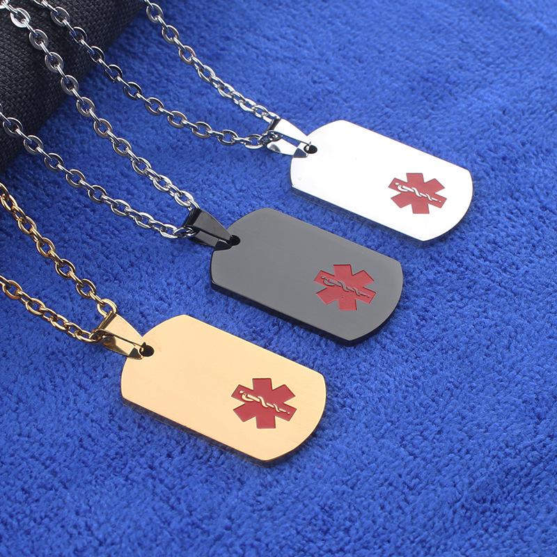 Męski naszyjnik z psią tagiem ze stali nierdzewnej z symbolem medycznym
