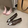 Cienki obcas zamszowe szpiczasty nosek płytki dekolt buty na jeden sezon damskie metalowa klamra obcas kotek buty wieczorowe