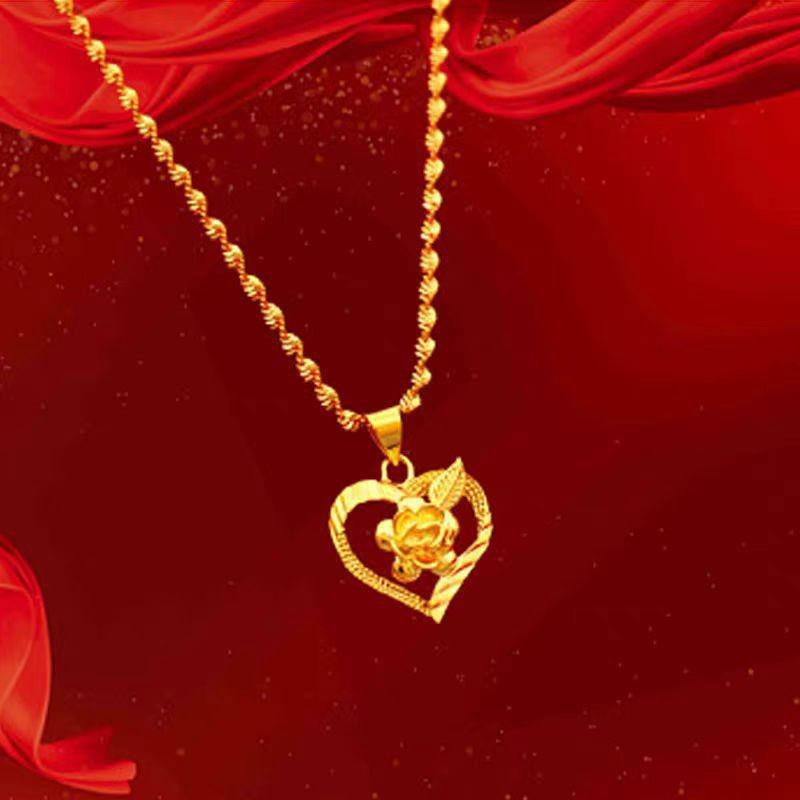 Naszyjnik ze złota piaskowego z wisiorkiem w kształcie serca i róży - Damski dodatek modowy