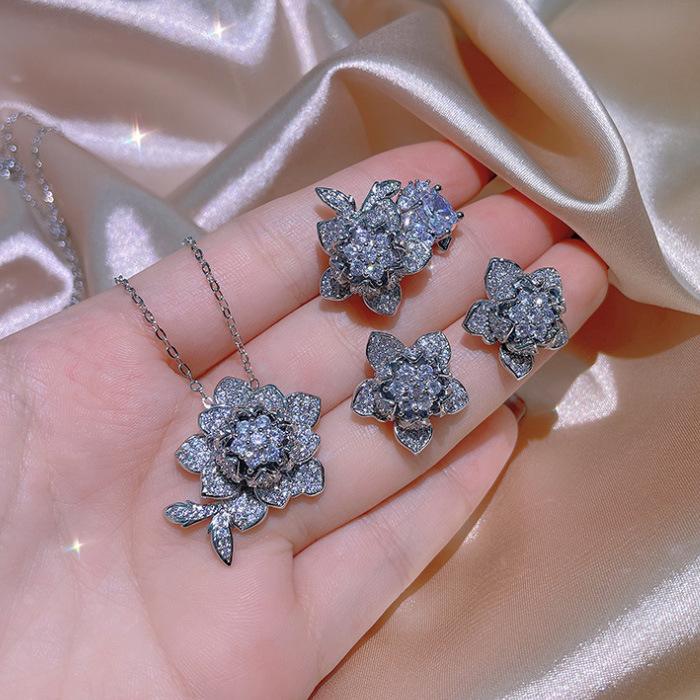 Creative Flower Necklace Set Earrings Necklace Three-Piece Zircon Jewelry Set