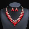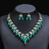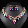 Vintage Przesadny Naszyjnik, Zestaw Kolczyków, Kryształowe Kamienie Szlachetne, Krótki Łańcuszek na Obojczyk, Damskie Dwuczęściowe Akcesoria Modowe.