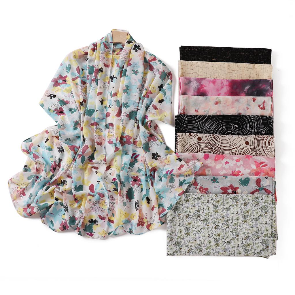 70*175cm Women Striped Floral Chiffon Hijab Fashion Scarf Lady Wraps Shawls Muslim Headband Islamic Scarves