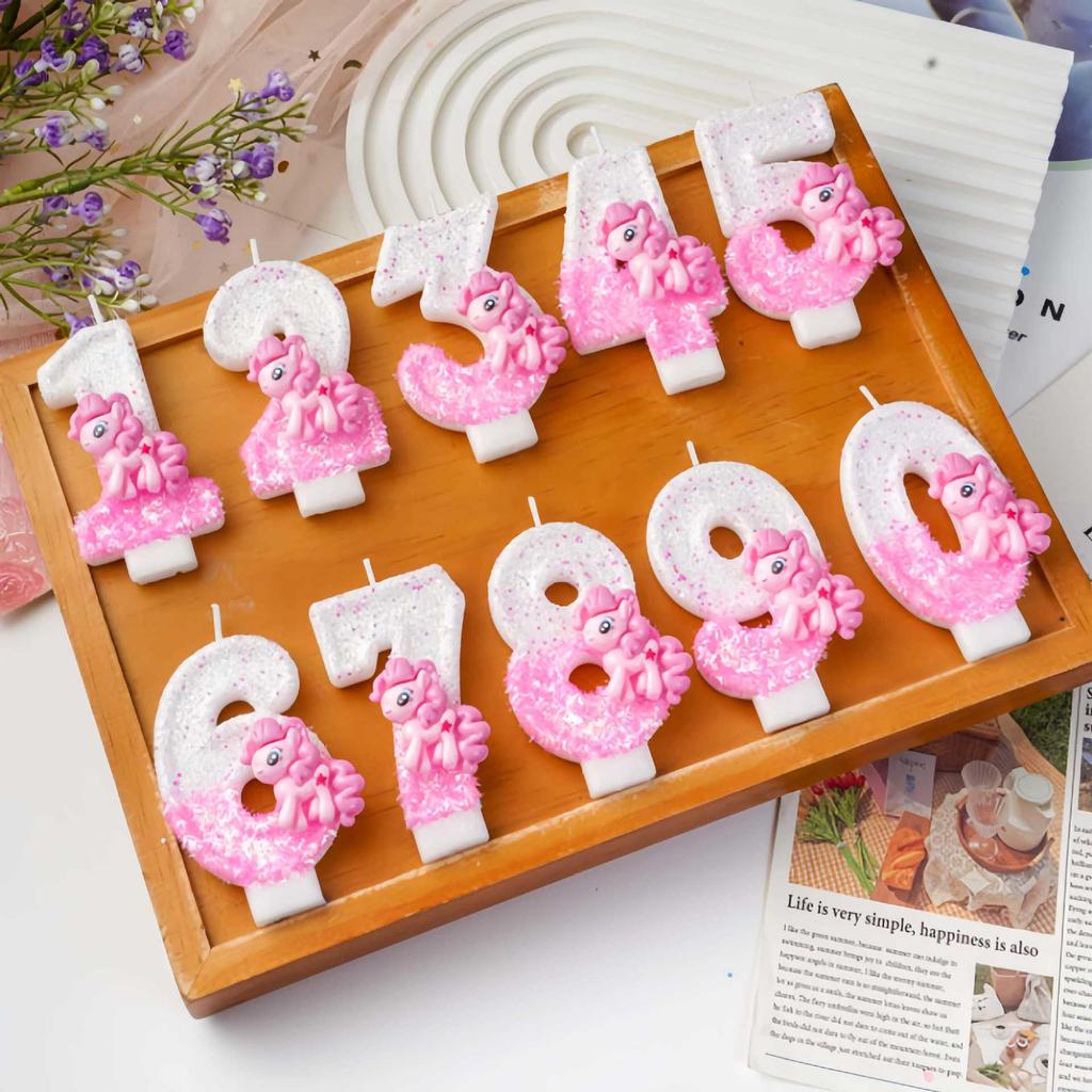 Pink Cartoon Pony Birthday Cake Number Candles Party Decorations