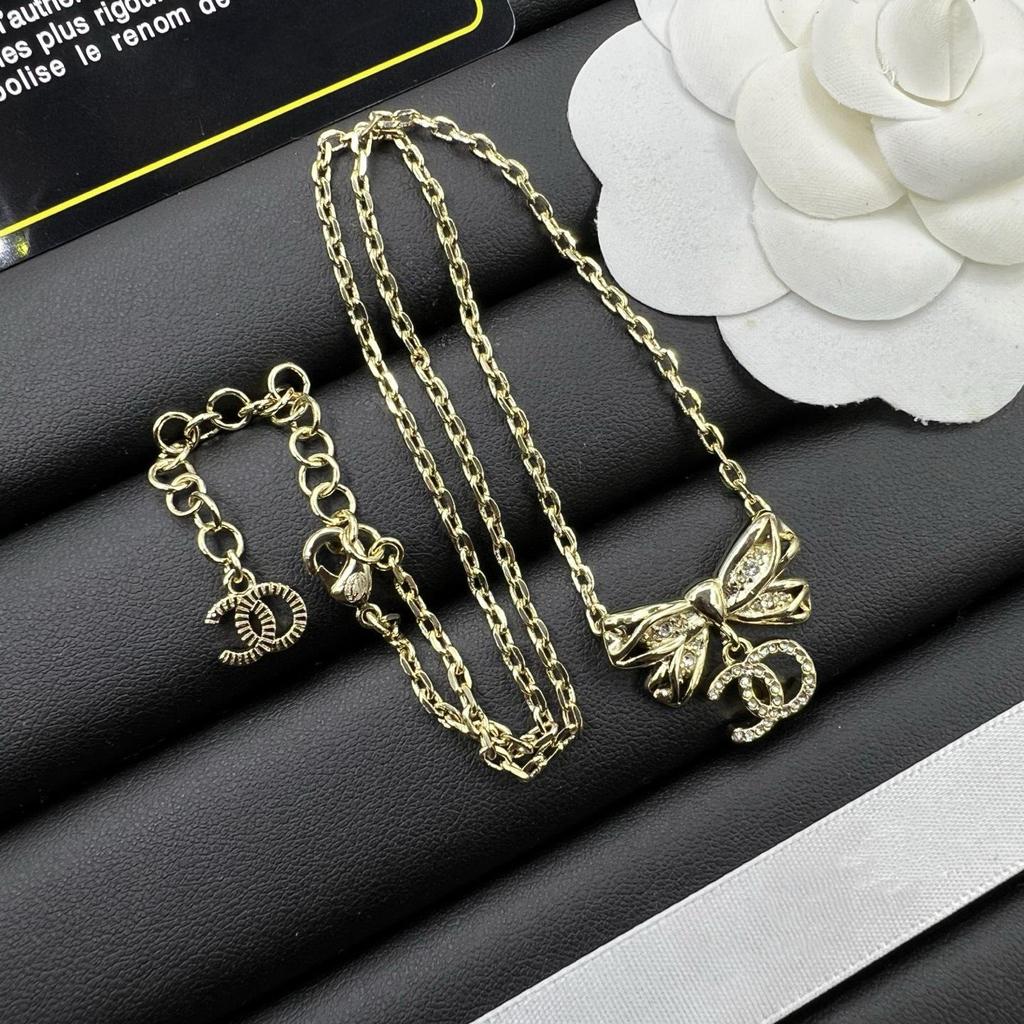 Xiangjia Luxe Naszyjnik z Wisiorkiem Kokardka i Diament - Elegancki Mały Styl Zapachowy Damski Łańcuszek na Obojczyk