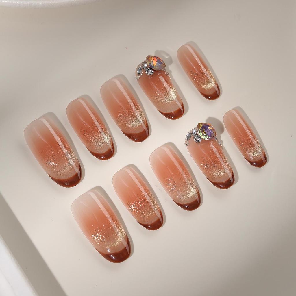 Zhuoshimei French Cat Eye Gel Handmade Removable Nail Patches - Autumn/Winter Whitening Luxury Manicure