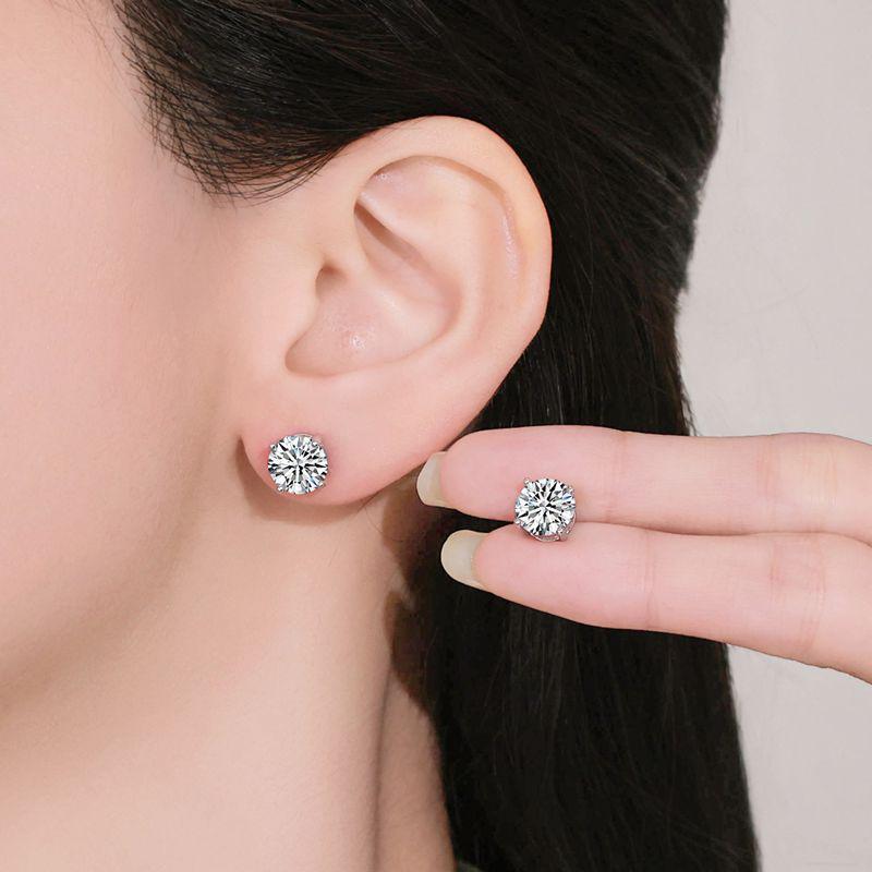Kolczyki sztyfty ze srebra próby 925 z moissanitem na czterech ząbkach dla kobiet - Proste, Modne, Wszechstronne, Design dwukaratowy