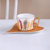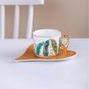 Personality European Lovely Feather Pattern Style Coffee Mugs Ceramic Home Office Milk Water Tea Cup + Saucer Plate Dish Set