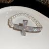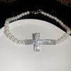 European-American Inlaid Diamond and Imitation Pearl Cross Choker Necklace - High-End Light Luxury Fashion Clavicle Chain