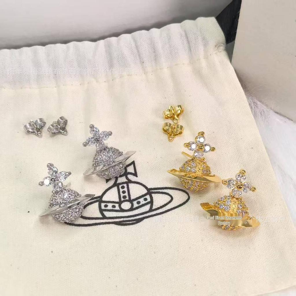 2025 Westwood Błyszczące Diamentowe Kolczyki Sztyfty Saturn: Damski Luksusowy Styl Punkowy, Trójwymiarowy, Jednostronny Design.