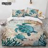 Poszwa na kołdrę z żółwiem morskim w stylu śródziemnomorskim, zestaw pościeli z nadrukiem zwierząt oceanicznych: ośmiornica, konik morski, motyw morski z poszewkami na poduszki