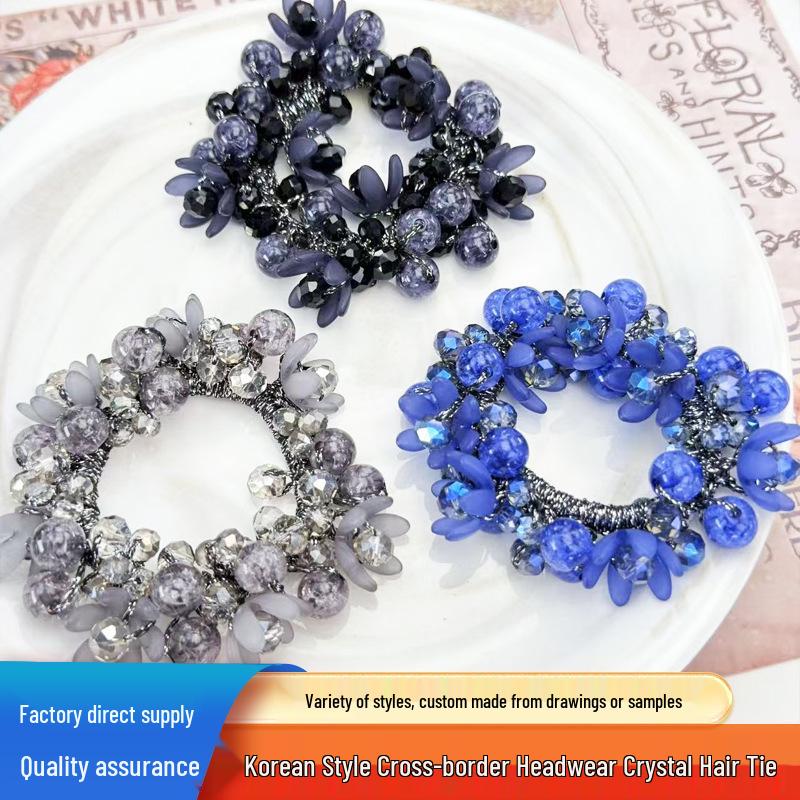 Retro Kwiatowy Kryształowy Gumka do Włosów - Wysoka Elastyczność, Prosty i Elegancki Dodatek do Włosów