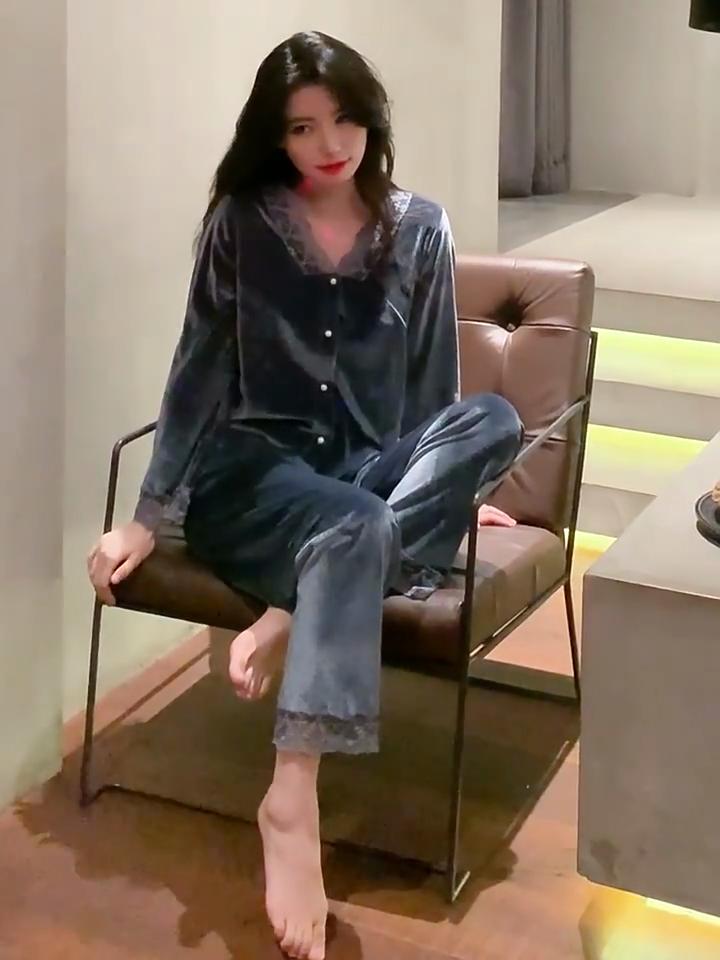 Women’s Pleuche Pajama Set Spring Fall Winter Long Sleeve Top and Pants Two Piece Loungewear