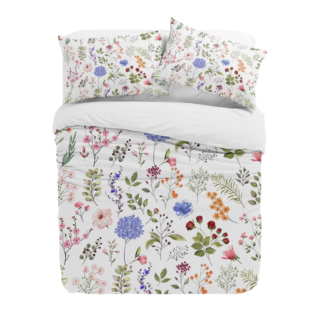 Vintage Ziołowy Kwiatowy Roślinny 3-częściowy Zestaw Pościeli na Łóżko Podwójne Tekstylia Domowe Poszwa na Kołdrę Pokrowiec na Kołdrę Poszewka na Poduszkę