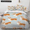 Corgi Dog King Queen Duvet Cover Yellow Cartoon Puppy Bedding Set For Kids Boys Girls Kawaii Pet Animal Pink 2/3Pcs Quilt Cover
