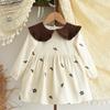 Sukienka dla dziewczynki z haftem kwiatowym, z kołnierzykiem, na wiosnę i jesień, nowa, z długim rękawem, wkładana, sukienka księżniczki
