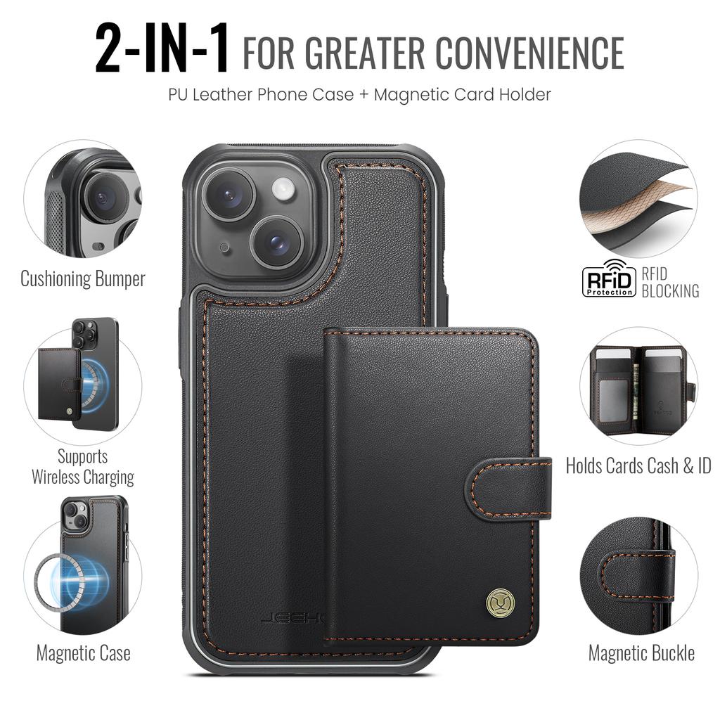 For iPhone 15 Case JEEHOOD J09 RFID Blocking Card Holder Leather Back Phone Cover Compatible with MagSafe