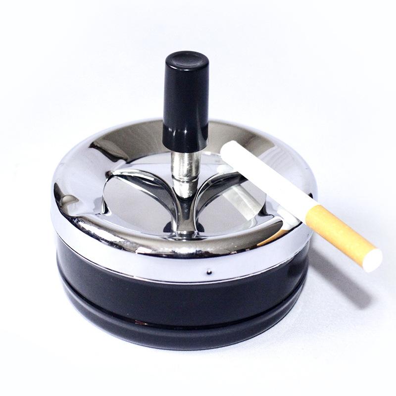 Cool Ashtray Stainless Steel Push Down Spinning Ashtray Self-Cleaning Ashtray With Lid Cover Ash Tray for Cigarette Smoking