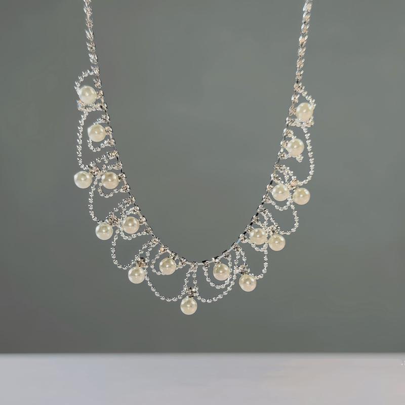 Francuski Retro Wykwintny Naszyjnik z Kryształkami, Perłami i Frędzlami - Wysokiej Klasy Wszechstronny Łańcuszek do Obojczyka