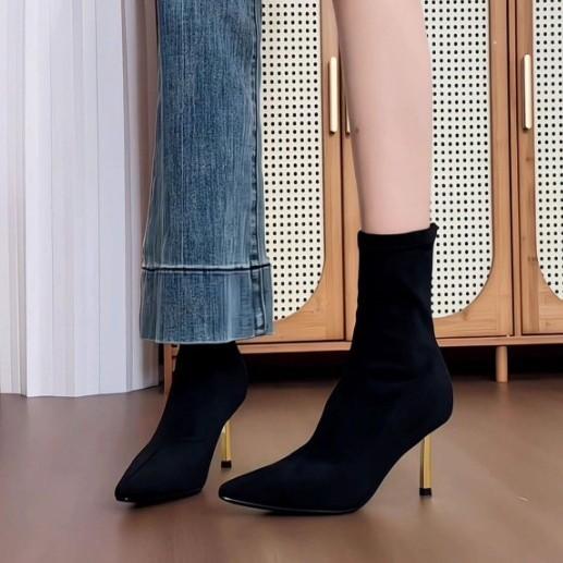 Winter thin boots women's banquet high heel boots Internet celebrity black thin heel tube elastic boots personality pointed versatile