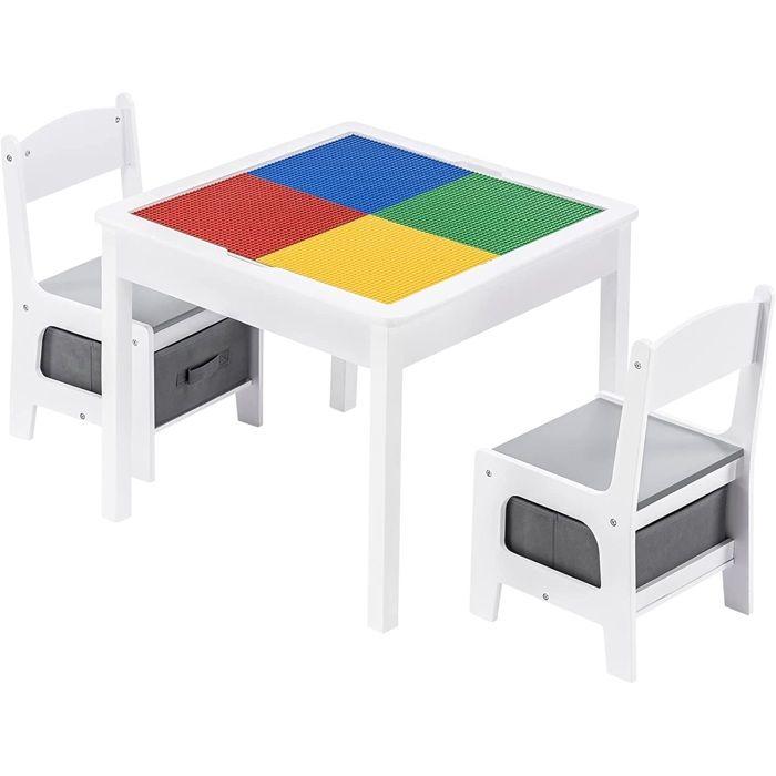 GINGER HOME Stół dla Dzieci + 2 Krzesła – Dwustronny Blat Kompatybilny z LEGO – Biały/Szary Drewno – Od 3 Lat