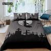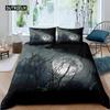 Pościel Królowa Król Motyw Horroru Poszewka na Kołdrę Gotycka Upiorna Poliester Poszewka na Kołdrę Gałęzie Szara Poszewka na Kołdrę Drzewo Halloweenowe