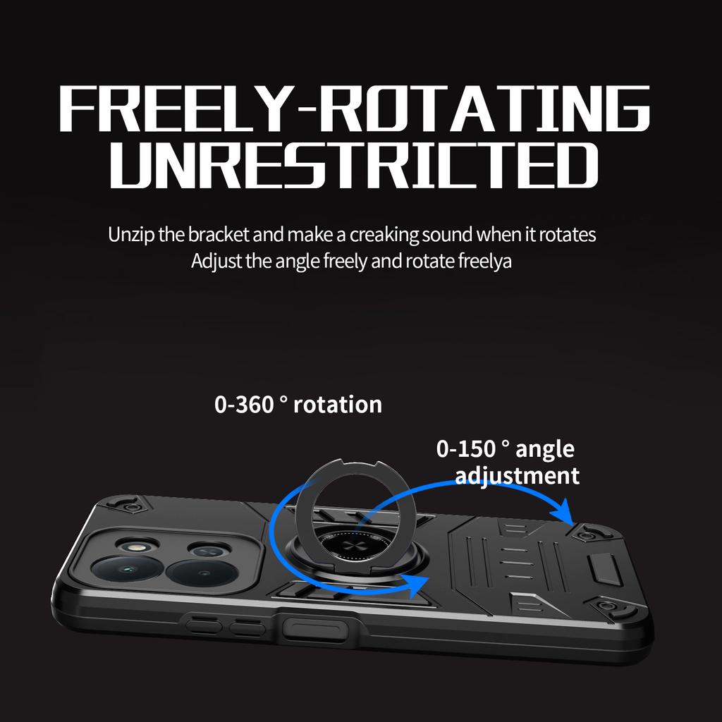 For Xiaomi Redmi 15C 4G (Global) (171mm)/Poco C85 4G (171mm) Case with Ring Holder Kickstand PC + TPU Anti-Fall Phone Cover