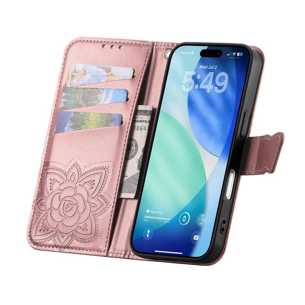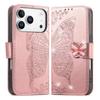 For iPhone 17 Pro Case 3D Rhinestone Decor Butterfly Flower Leather Phone Cover with Wrist Strap