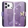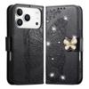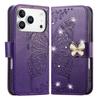 For iPhone 17 Pro Max Case 3D Rhinestone Decor Butterfly Flower Leather Phone Cover with Wrist Strap