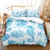 Zestaw pościeli o tematyce nadmorskiej z nadrukiem 3D żółwia morskiego, rozgwiazdy, korala, muszli morskich. Miękki zestaw poszwy na kołdrę w rozmiarze pojedynczym, bliźniaczym, podwójnym, queen, king.