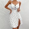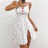 Trendy Heart Print Ribbed Split Suspender Nightgown Loungewear for Going Out